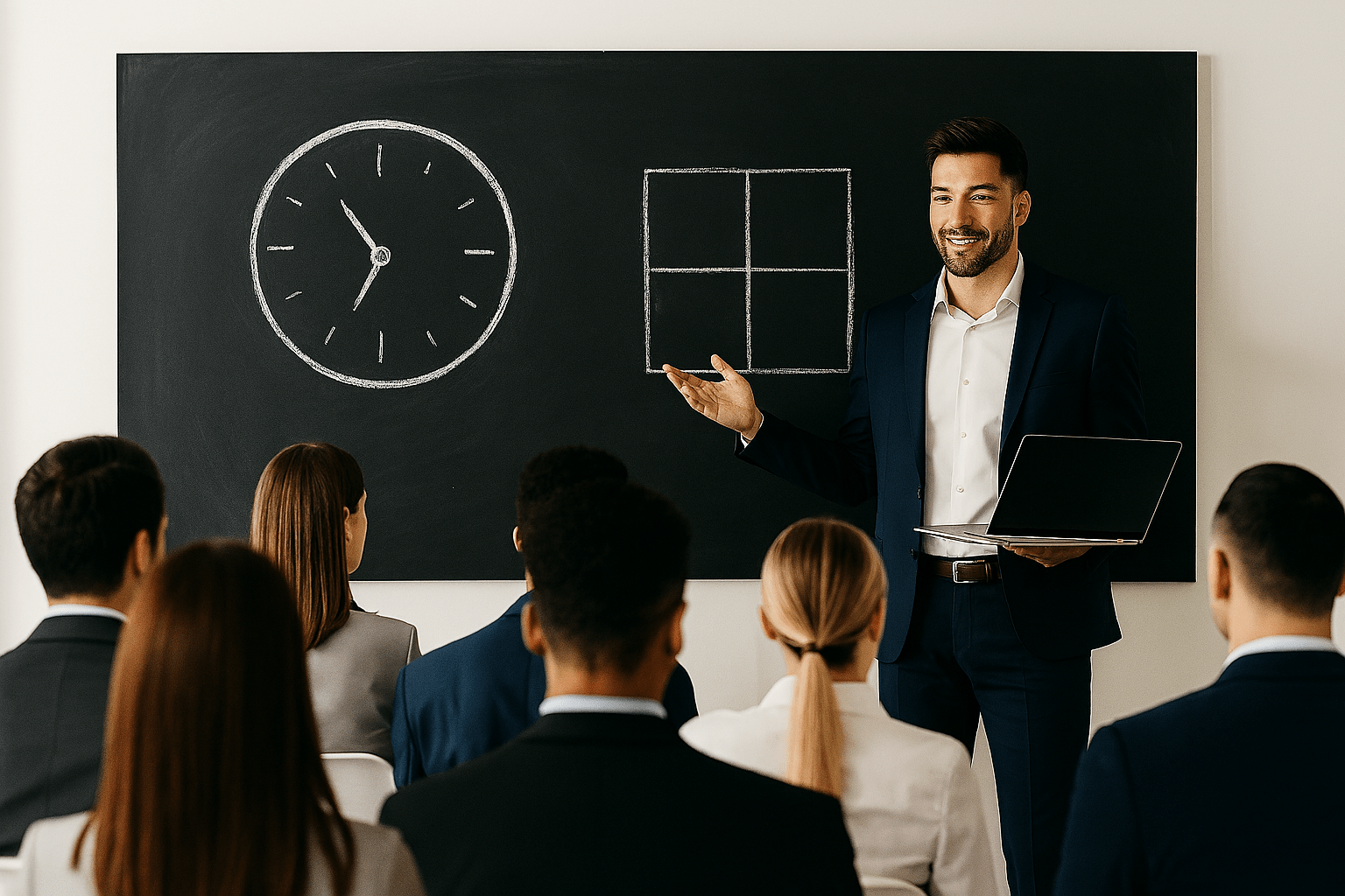 Formaciones prácticas en liderazgo, gestión del tiempo y productividad, adaptadas a equipos y organizaciones.