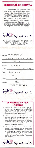 El precio del anillo fué de 91.000,00 bolívares de los de la época. Hoy en día no es ni siquiera lo que gasto en desayuno cuando voy con mi esposa e hija, pero en aquel entonces, era una gran suma de dinero. Tanto, que recuerdo que dimos un monto como anticipo, y quedamos pagando no recuerdo cuántas cuotas, al final de las cuales, tendría la joya en mis manos, lista para ser usada por el nuevo profesional en el cual me convertiría.